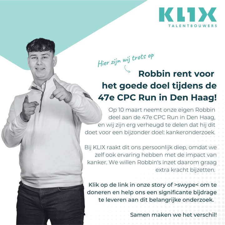Robbin rent voor het KWF tijdens de 47e CPC Run in Den Haag! Bij KLIX raakt dit ons persoonlijk diep, omdat we zelf ook ervaring hebben met de impact van kanker. We willen Robbin’s inzet daarom graag extra kracht bijzetten. Je kunt ‘m sponsoren door te klikken op deze link: https://acties.kwf.nl/fundraisers/robbinkosman (Feed generated with FetchRSS)